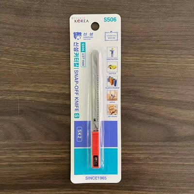 Mỗi con dao tiện dụng SINSEUNG S506 9mm đi kèm với một lưỡi dao làm bằng thép SK2 bền, nổi tiếng với độ sắc nét và tuổi thọ.Cơ thể dao bằng thép bạc với đuôi màu đỏ thêm một chút phong cách cho công cụ thực tế này, làm cho nó dễ dàng phát hiện trong một không gian làm việc bận rộn.